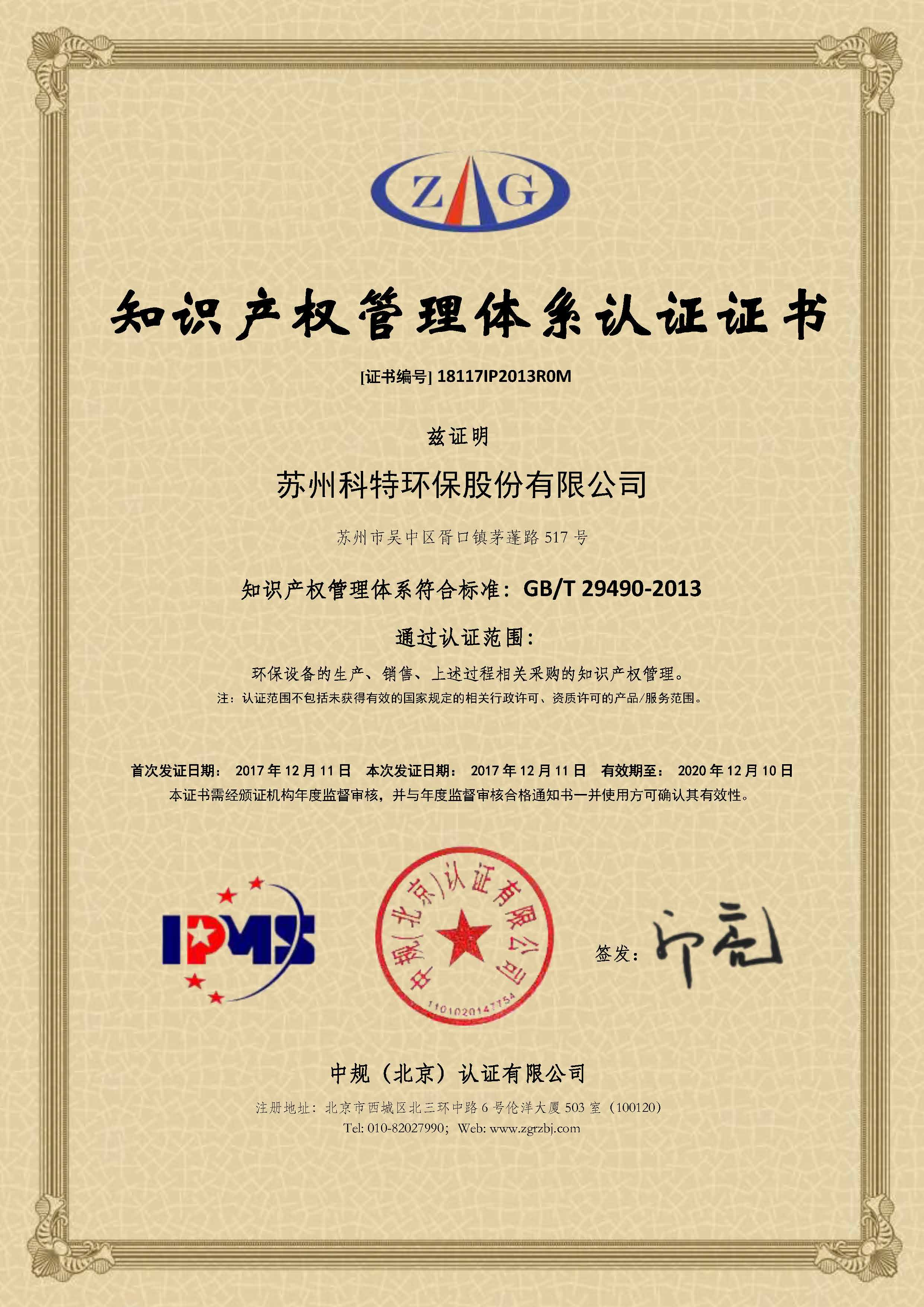 經過一個多月的準備和改正,蘇州科特環保順利通過現場審核,獲得知識產權管理體系認證證書,今后我們將落實和不斷完善科特的知識產權管理的各項制度。