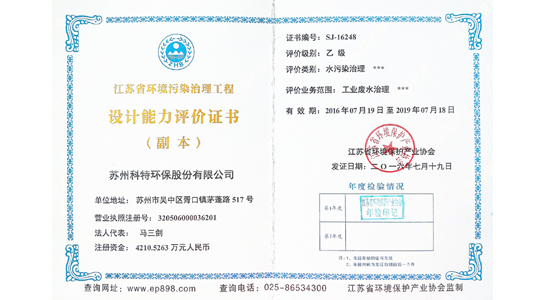 查看詳情 +6月5日,科特環保向江蘇省環境保護產業協會提交了“江蘇省環境污染治理工程設計能力評價”、“江蘇省環境污染治理工程總承包能力評價”及“江蘇省環境污染治理能力評價”三項資質證書…